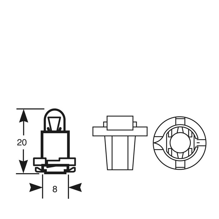 12V 1,2W Sokkel B8,0d / EBS-R ROHELINE