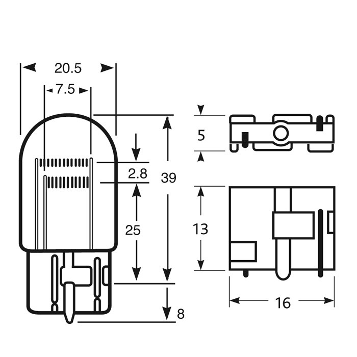 12V 21/5W Sokkel T20 / W21/5W Piduri-, suuna-, udu- ja parktulepirn klaassokliga