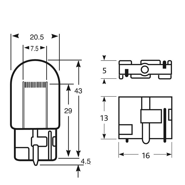 12V 21W Sokkel T20 / W21W Piduri-, suuna-, udu- ja parktulepirn klaassokliga