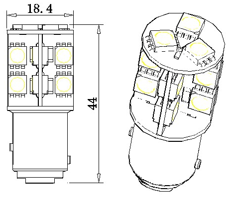 Led pirnid 12V BAY15d / P21/5W 19xSMD tüüpi lediga, CANBUS veateate eemaldajaga, VALGE