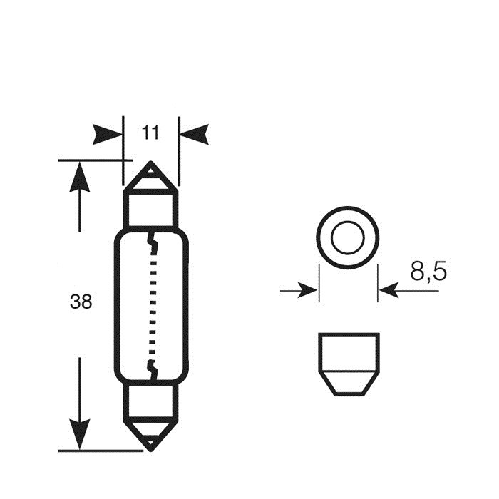 6V 5W Sokkel SV8,5 11x38mm