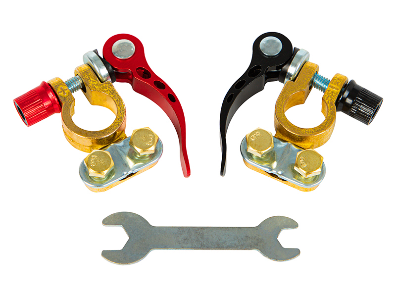 Universaalne iselukustuvate klemmide komplekt, mida kasutatakse standardmõõtmetega autodes. Klambritel on kiirkinnitusklambrid ja need on mõeldud akude paigaldamiseks.