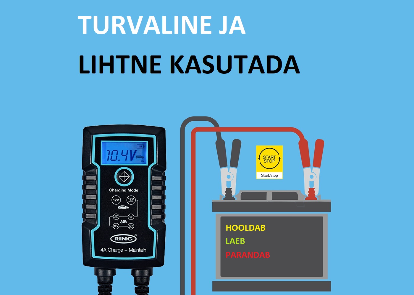 - Ühendage ja olge kindel – kui aku on täis kohandub see automaatselt ümber pikaajalise hoolduse reziimile