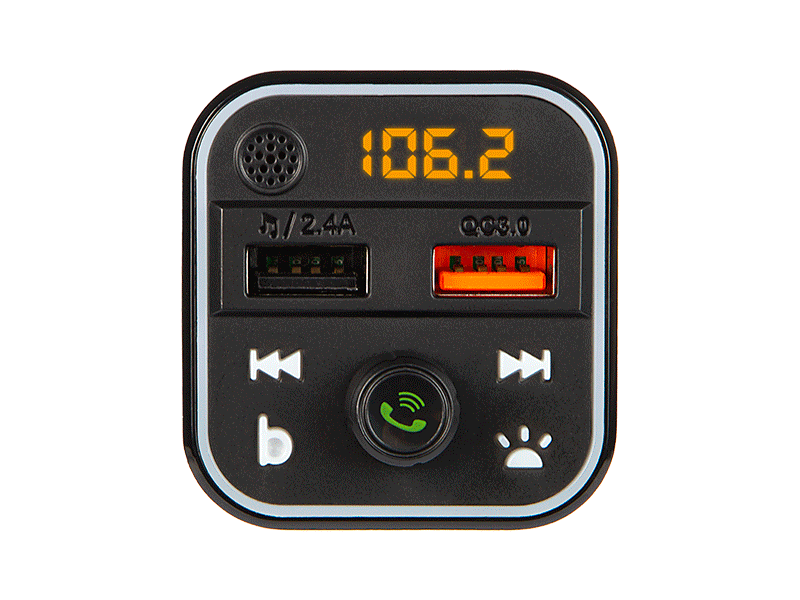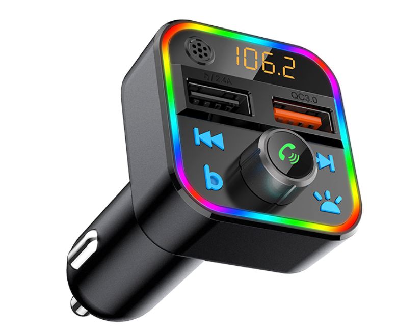 FM-saatja Bluetooth 5.0 vabakäekomplekti ja QC 3.0 USB-kiirlaadijaga. Lisaks on seade varustatud mitmevärvilise taustvalgustusega, mis suudab ka muusika rütmi järgi värve muuta.