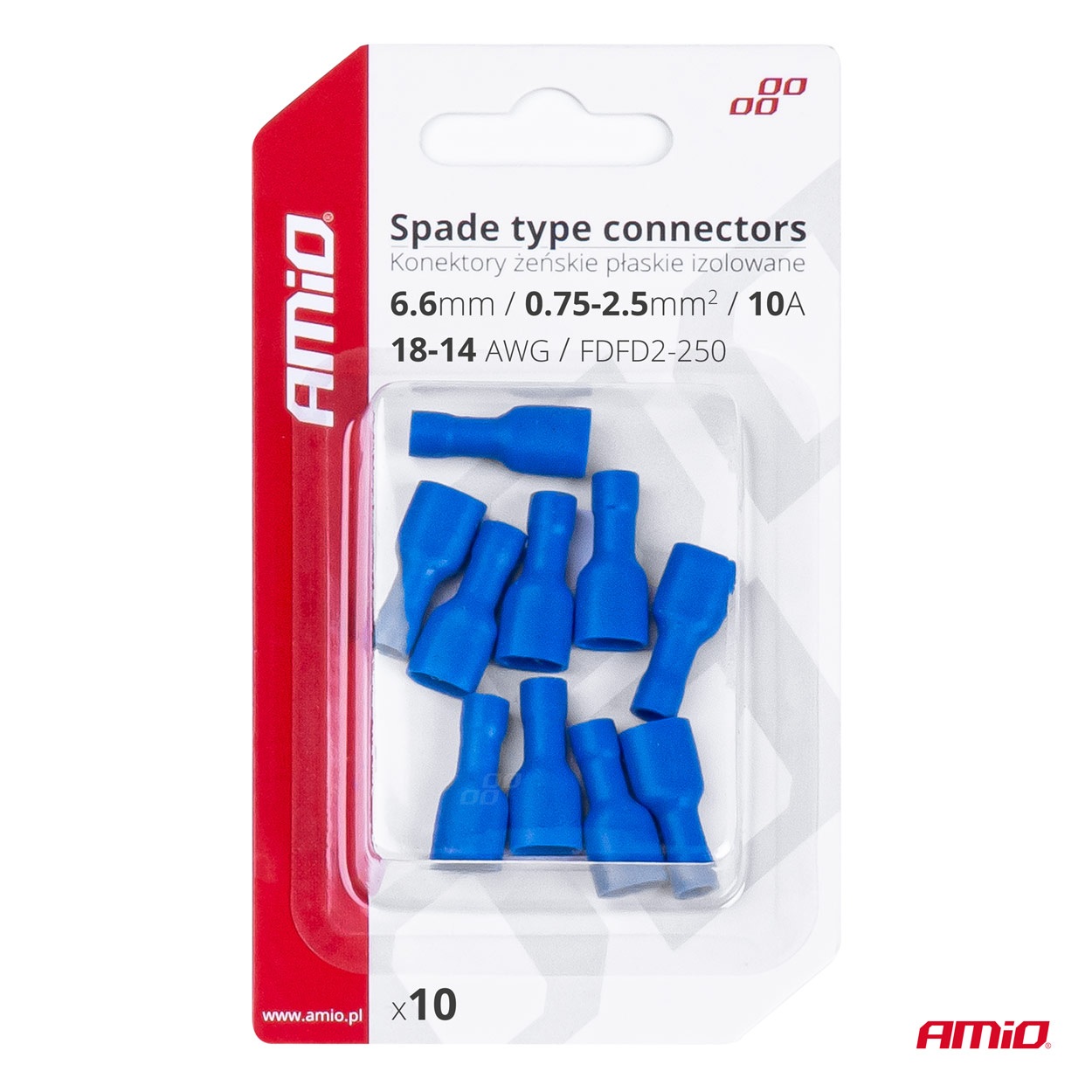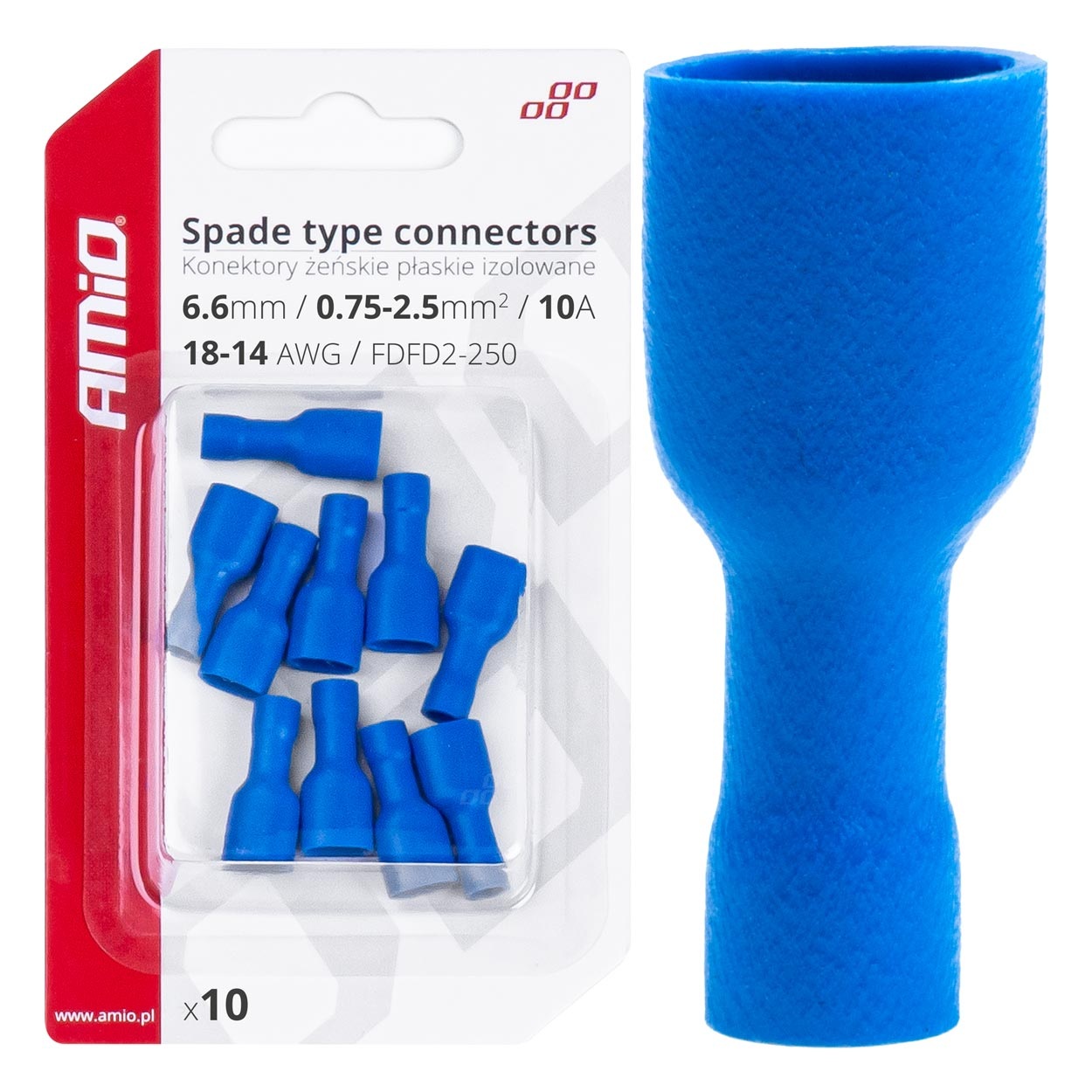 Juhtmeotsik lapik sinine 6.6mm 0,75-2,5mm2 15A kaetud 10tk