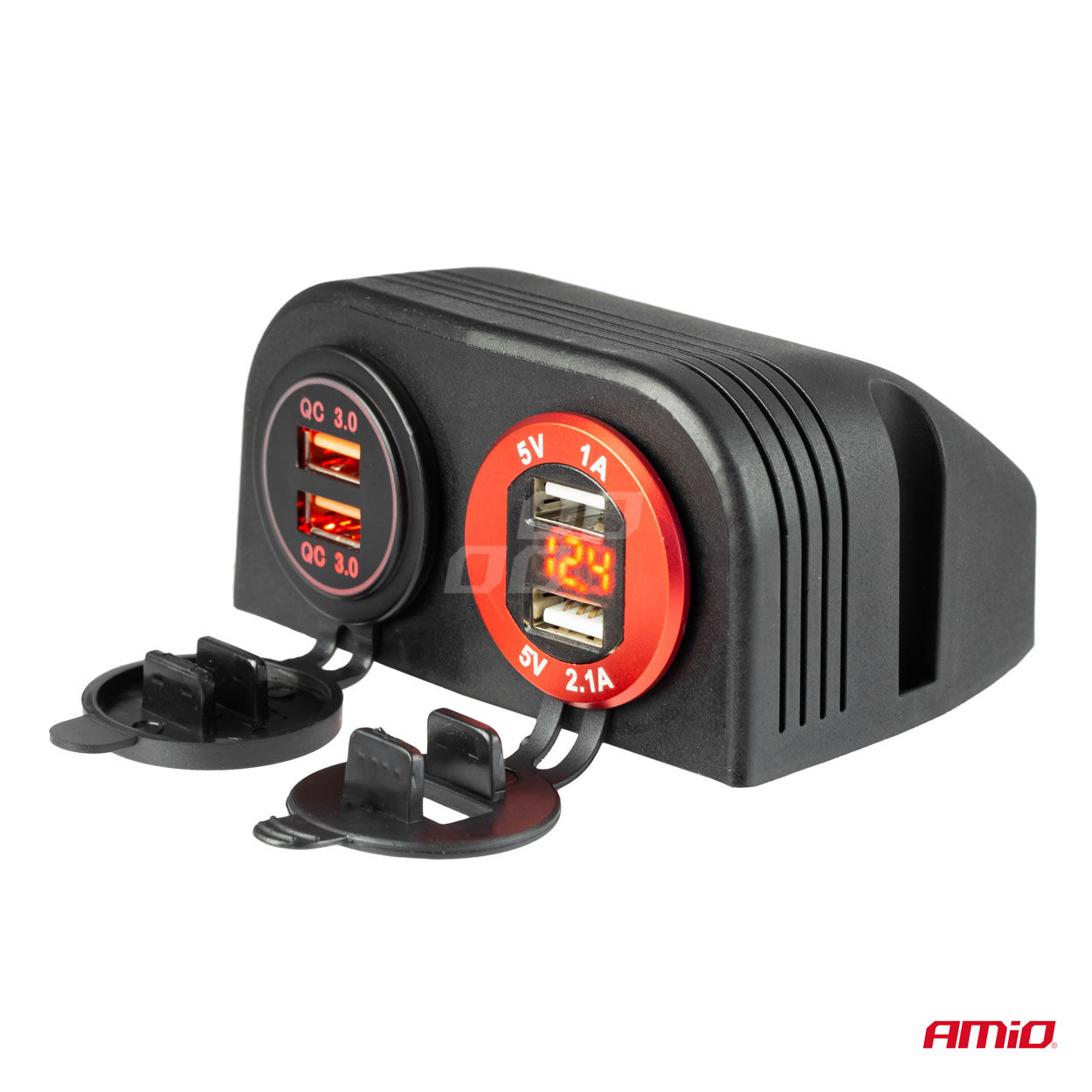 Kahe auguga väline korpus USB pesale, voltmeetrile Amio 02866