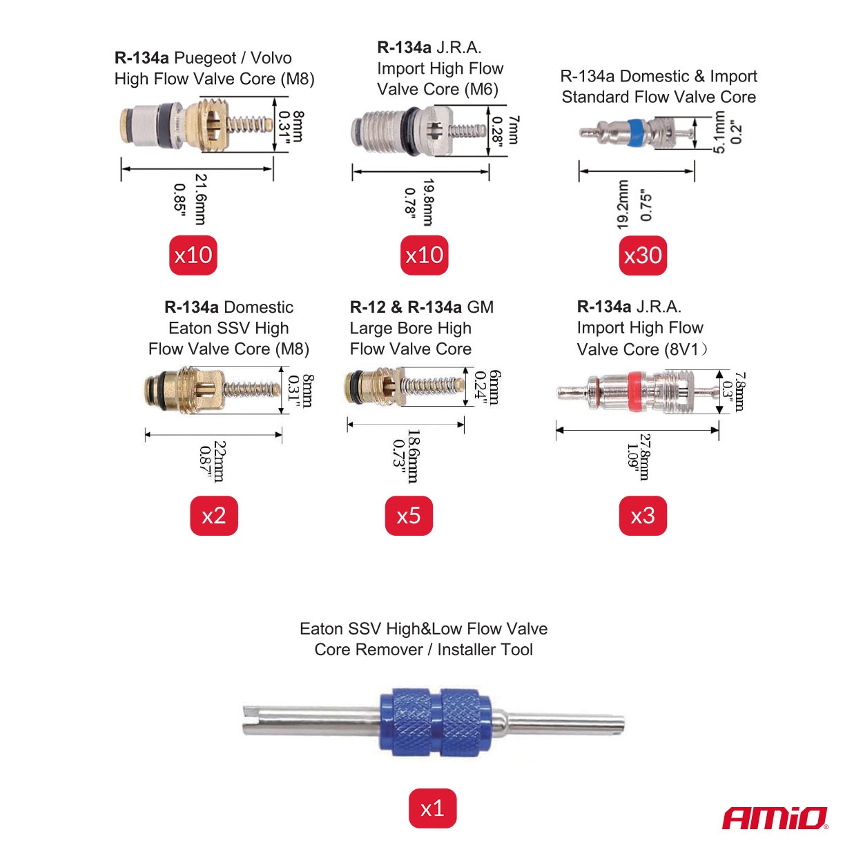 Kliimaseadme ventiili südamike komplekt 61-osaline Amio 04446