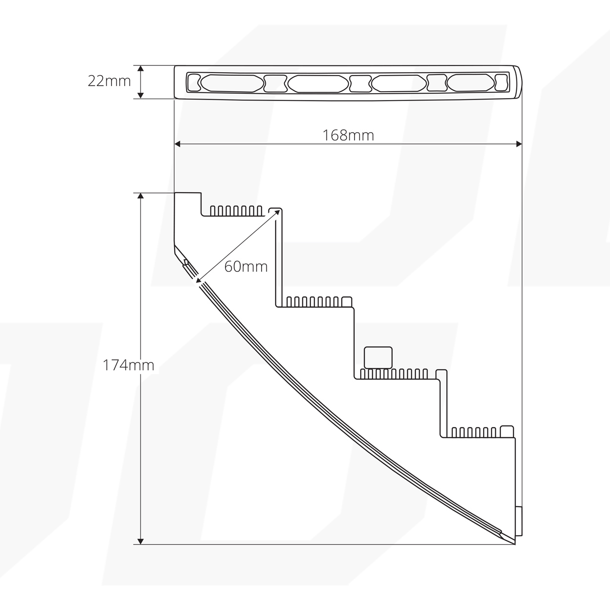 - Pikkus x kõrgus x laius – 216 x 22 x 60 mm