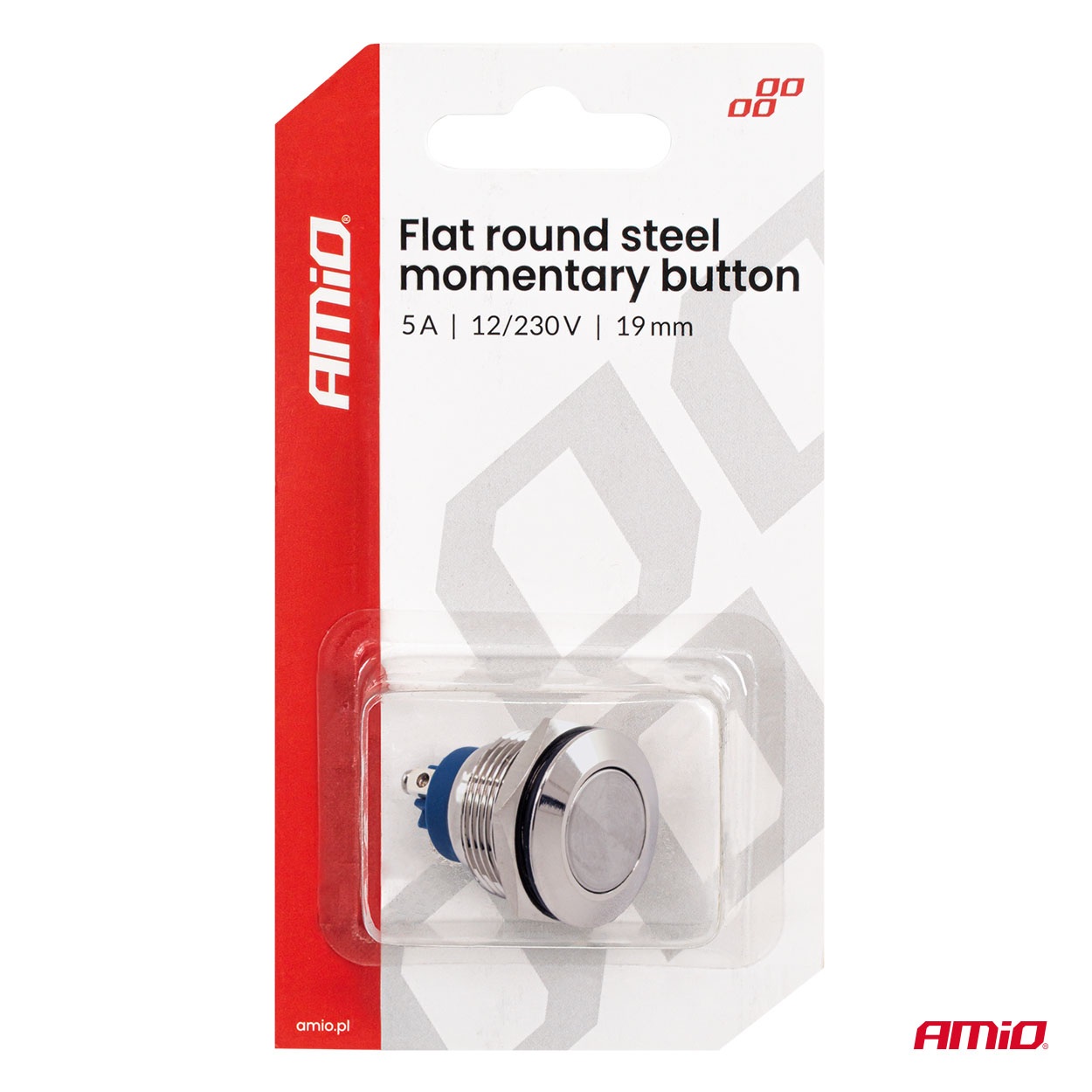 Professionaalne, lame, 19 mm läbimõõduga terasest start/hetkeline nupp, mis on mõeldud 12/230 V elektriahelate juhtimiseks. See võimaldab vooluahela hetkelist sulgemist või avamist voolutugevusega kuni 5 A, mistõttu sobib see ideaalselt kasutamiseks sõidukites, tööstusseadmetes ja juhtpaneelides.