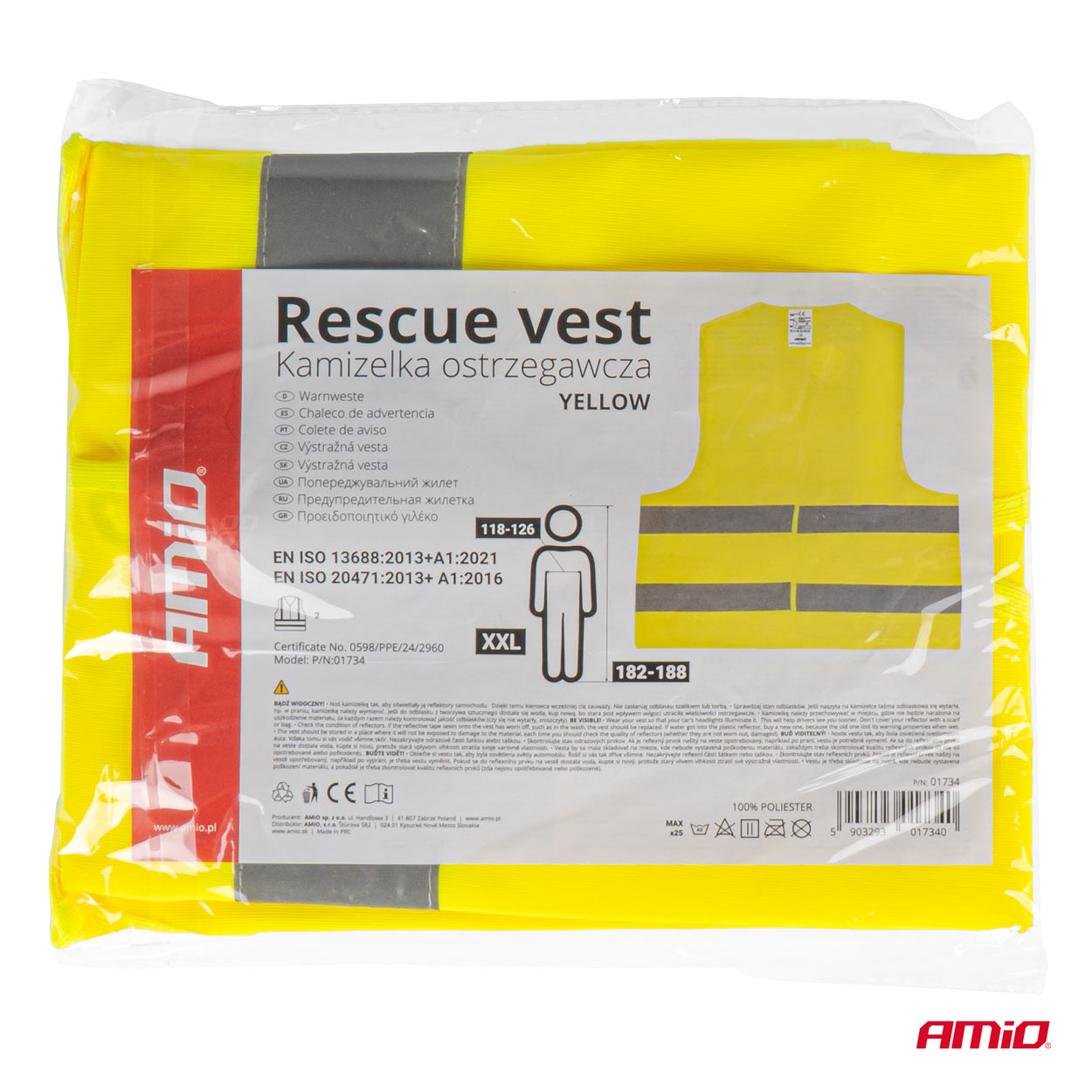 Ohutusvest kollane XXL ISO: 20471:2013+A1:2016 Amio 01734