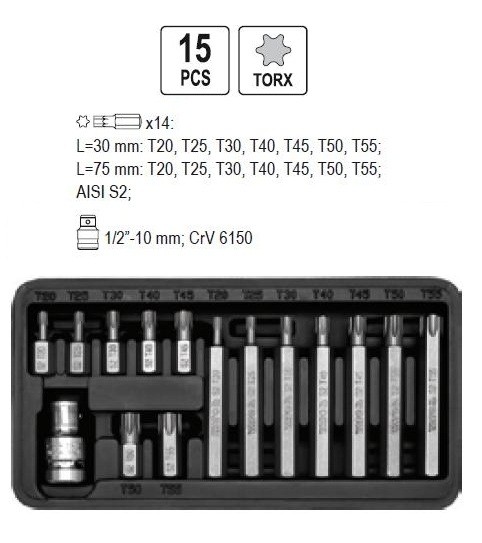 Otsikute kompl TORX 15osa YATO YT-0411