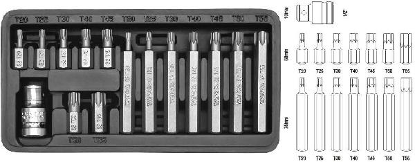 Otsikute 15-osaline komplekt, TORX, CrV