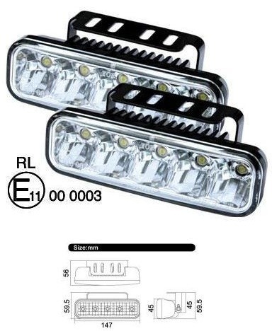 LED päevasõidutuled 12/24V “Aurora” 5×1,5W lediga, RL, E11, Automaatlülitusega
