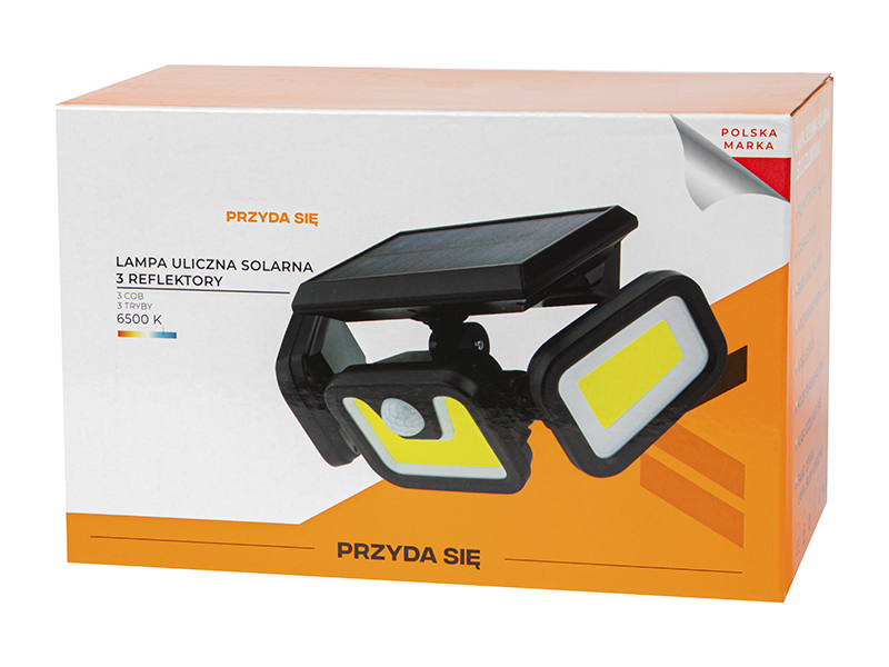Päikeseenergial tänavavalgusti 3 reflektoriga + andur 67-495