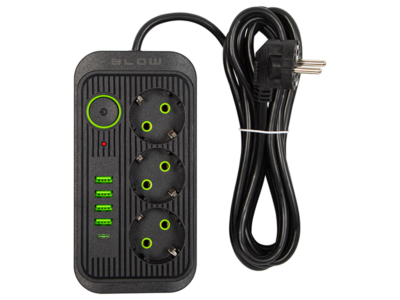 Pikendusjuhe kandiline 4xUSB 1xUSB-C 3m must 2x1mm Blow 98-234