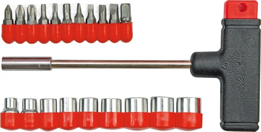 T–peaga kruvikeeraja otsikute ja padrunvõtmete 21-osaline komplekt
