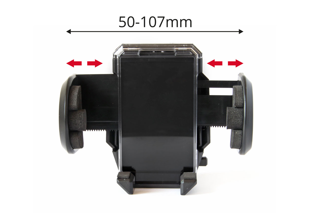 - Telefonihoidja on reguleeritav 50-107mm.