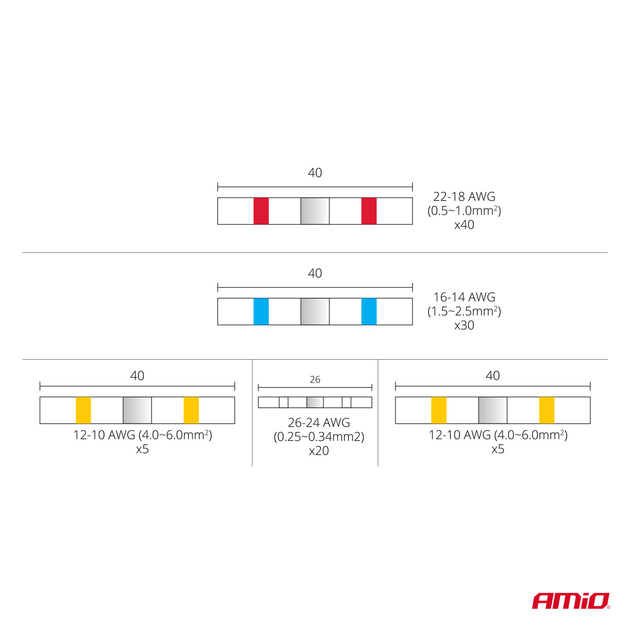 - Punane: 0,5-1,0 ² mm – 40 tk