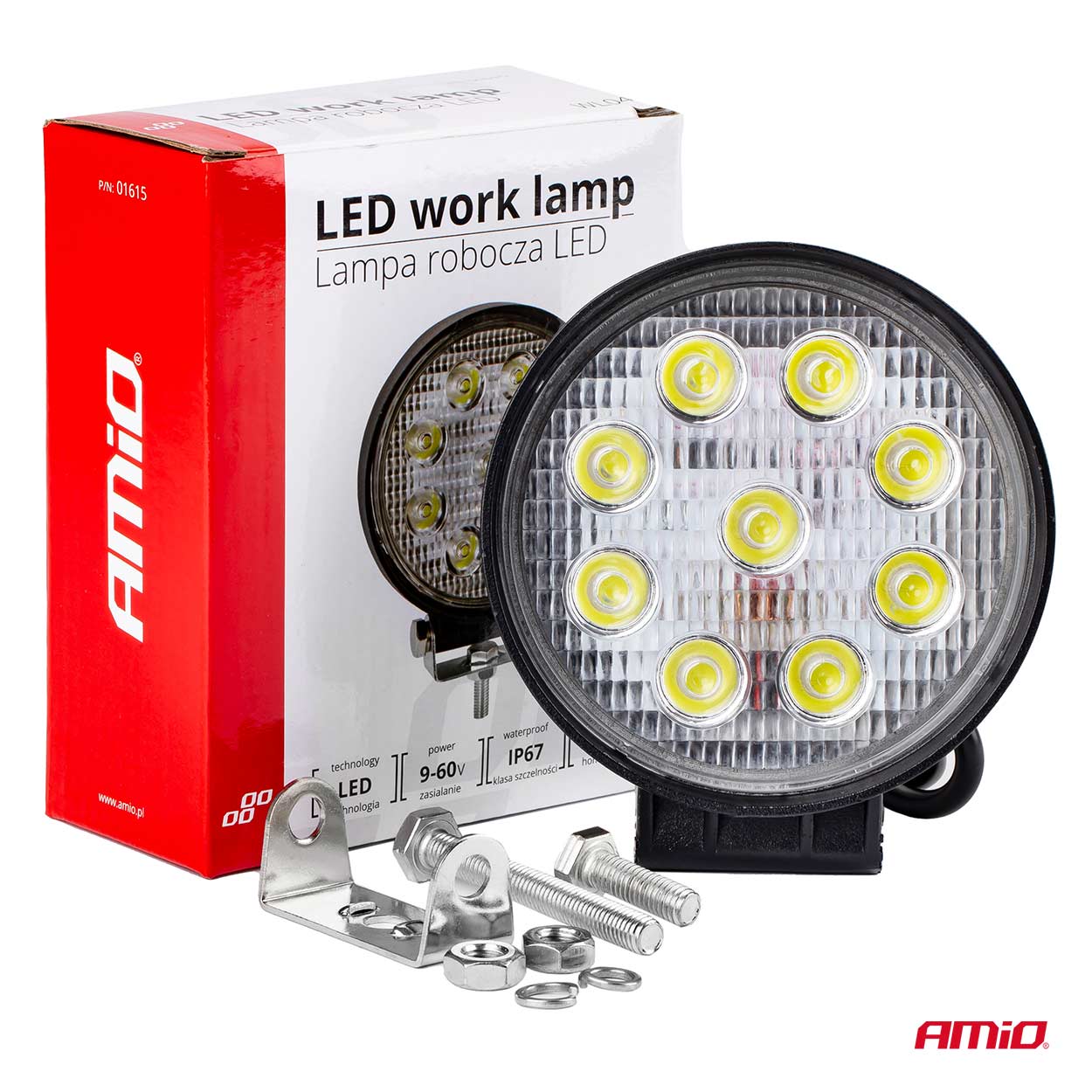 Töötuli 9-60V 27W ümar 115c35mm Amio 01615