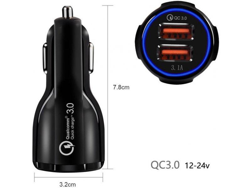 USB kiirlaadija12-24V 3,1A must MCE478B