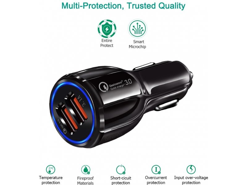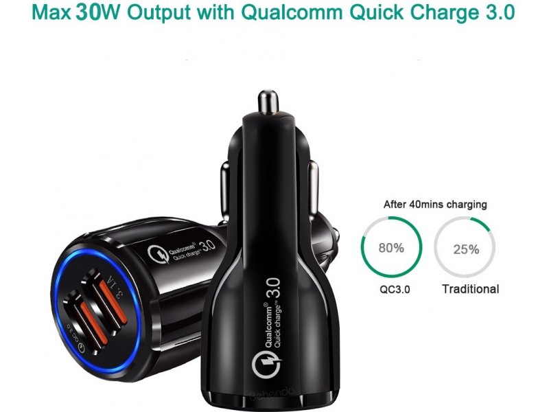 Lisaks tavalisele USB-pordile on laadija varustatud Qualcomm Quick Charge QC 3.0 laadimisstandardiga pordiga. QC3.0 standardit kasutades saate saavutada kuni 4 korda kiirema laadimise kui tavalise laadijaga ja kuni 38% kiiremini kui vanema QC2.0 standardiga.